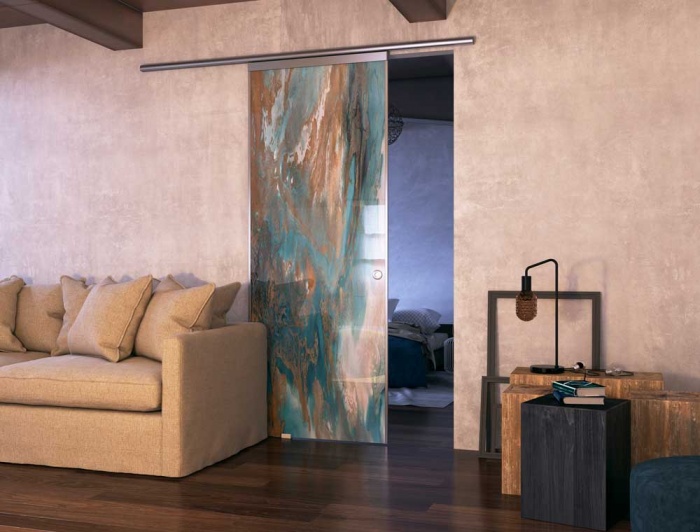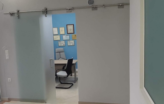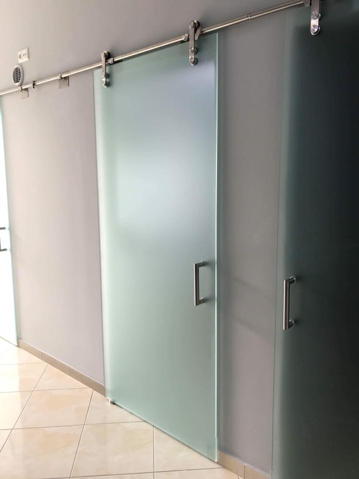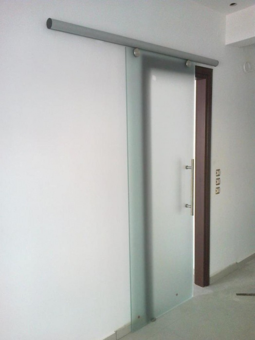 Η συρόμενη πόρτα αποτελείται κυρίως από εξαρτήματα τα οποία είναι κατασκευασμένα από ανοξείδωτο χάλυβα υψηλής αντοχής και ευρωπαϊκό μηχανισμό. Το κρύσταλλο που χρησιμοποιείτε έχει πάχος 10mm ασφαλείας (securit) και διατίθεται σε πολλούς χρωματισμούς.